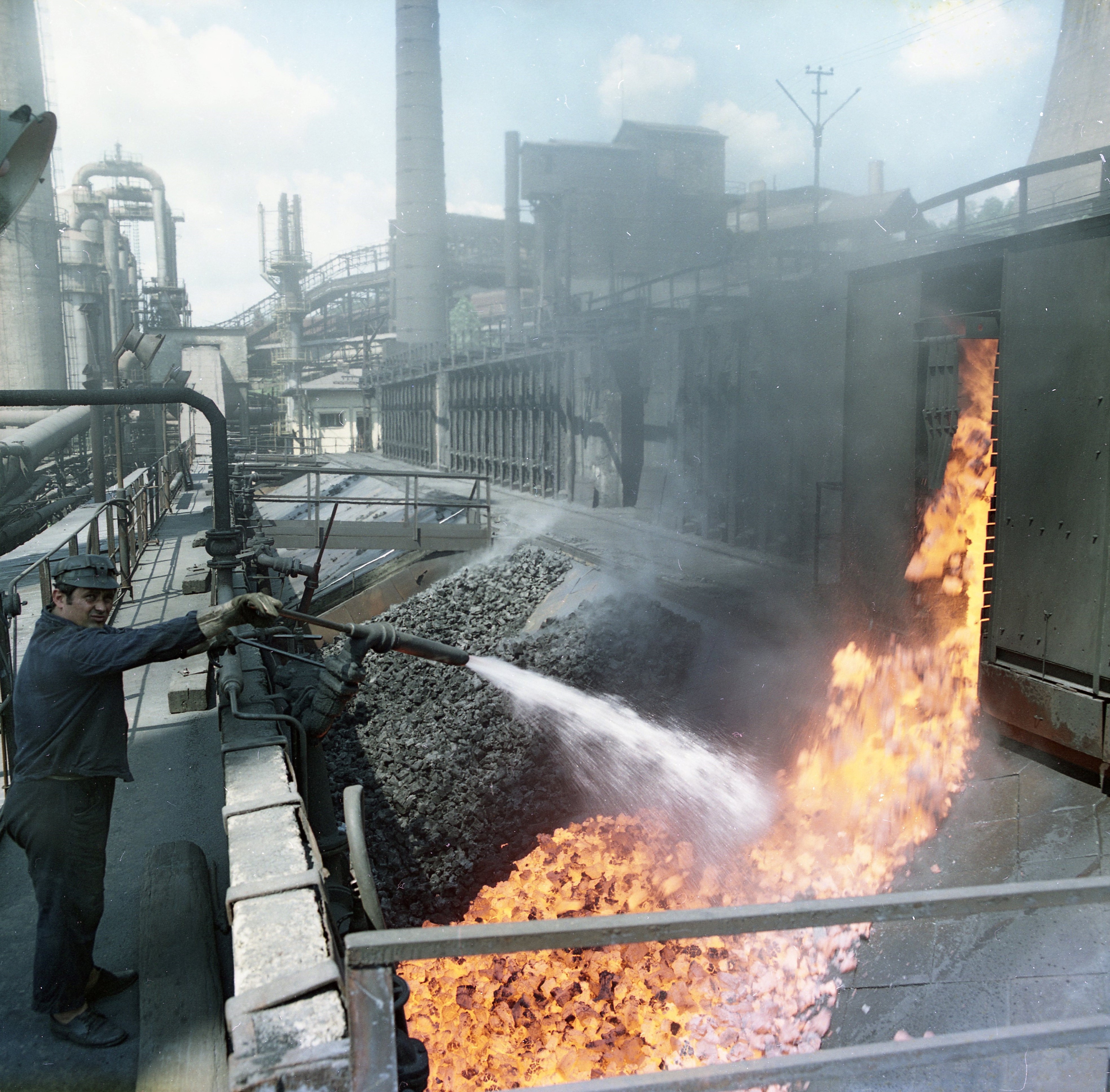 Descărcare cocs din bateria de cocsificare în perioada comunistă | Sursă: Ioan Mato