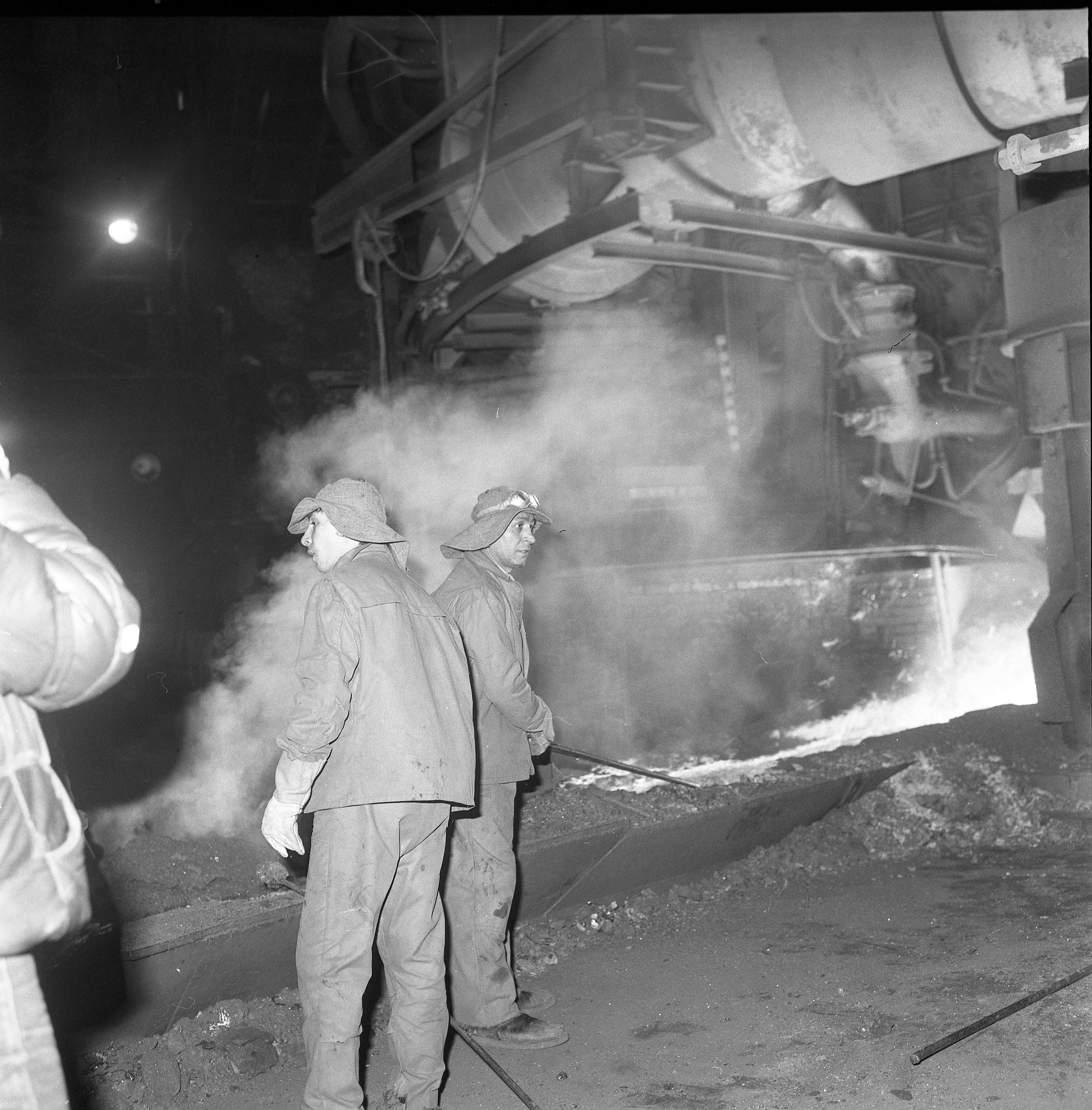 Furnaliști supraveghind șarjă la furnal | Sursă: Aurel Săndulescu, perioada CSR 1962-1990